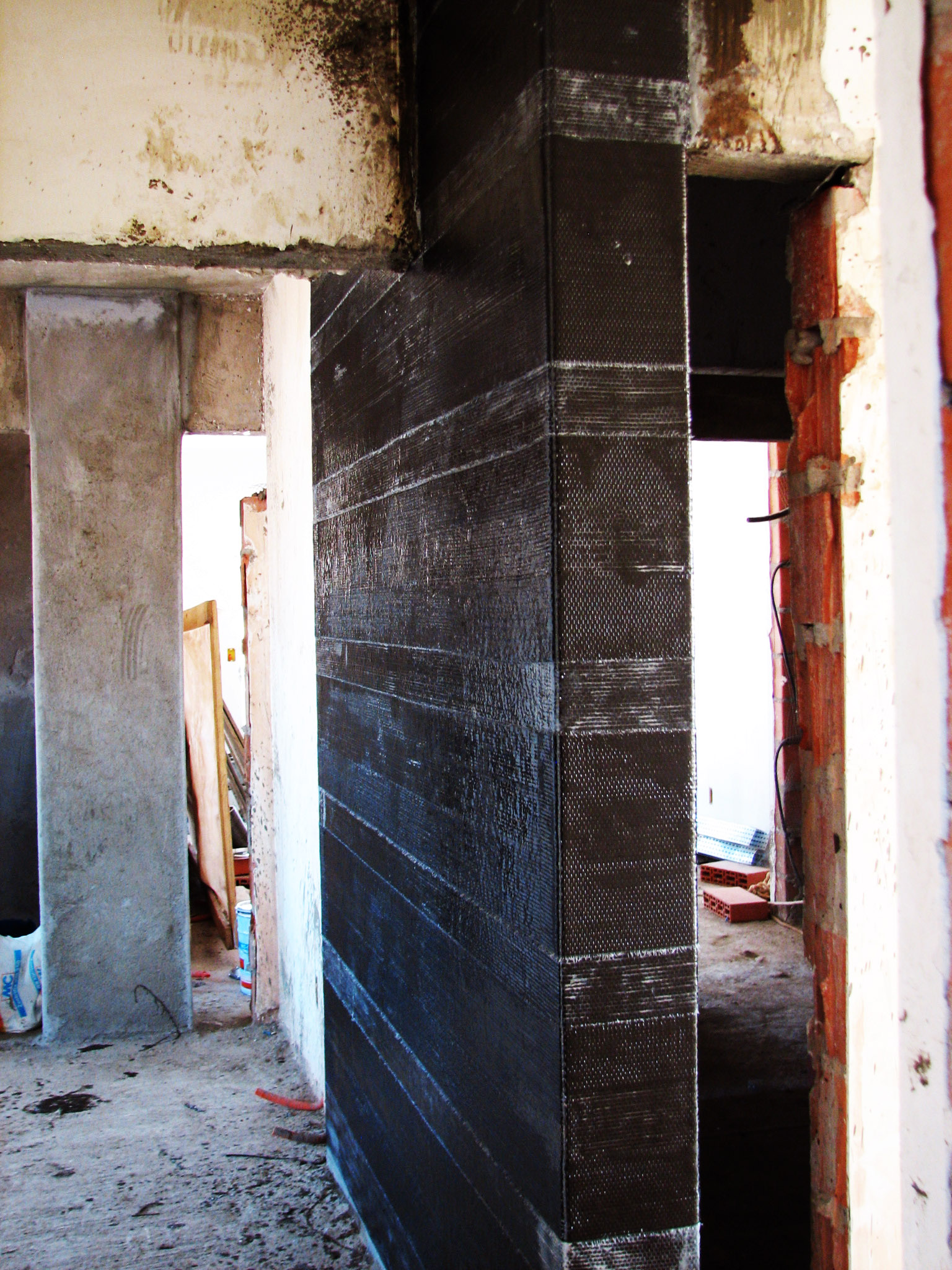 Quando se necessita apenas de resistência à tração, o sistema de fibras de carbono tem ótima relação custo-benefício. Saliente-se o fato de que a fibra de carbono não altera os aspectos estéticos originais da obra pois, via de regra, não há aumento de seção das peças a serem reforçadas. Este sistema é muito utilizado quando se necessita ampliar a resistência mecânica à compressão de pilares e se lança mão do reforço por cintamento.